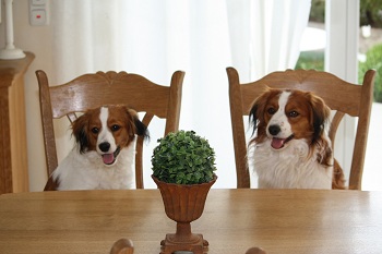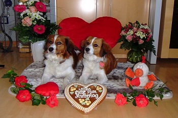 und warten am Geburtstagstisch geduldig auf ihren Hundekuchen.